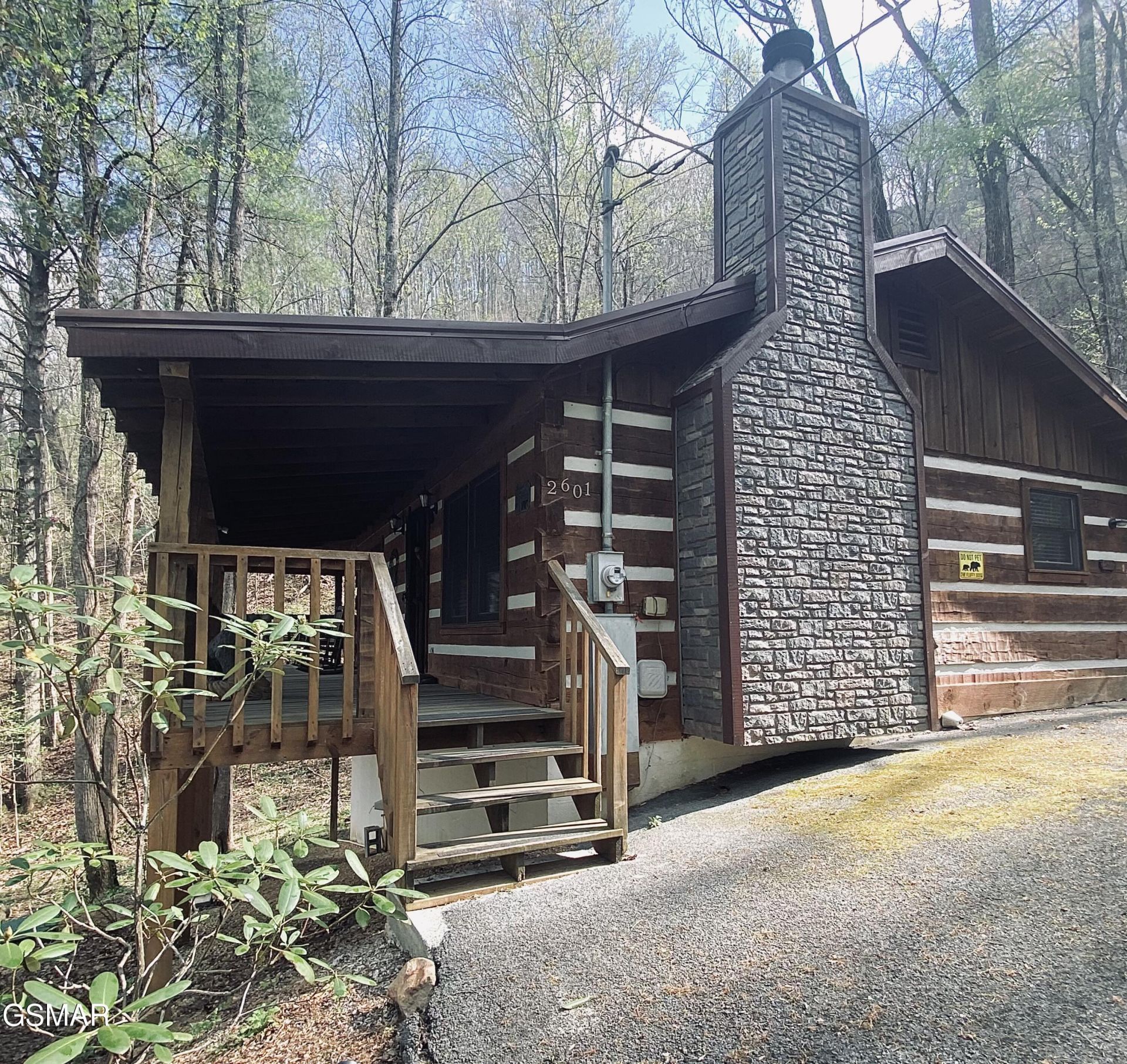 A Little Slice of Heaven in Bluff Mountain Acres - This charming 1BR/2BA traditional TRUE LOG CABIN offers the perfect blend of comfort, privacy, and mountain appeal, featuring authentic features like log chinking, full wrap around covered porches, exposed hand hewn beams, metal roof, stone fireplace, wood floors, meticulously maintained, -so much to love! There is a master BR with full bath and linen closet, plus an additional private sleeping area with a 2nd full bath, generous size closets. Set on .68 acre lot, in a gorgeous mountain setting, with no bad roads & easy, wide, level parking with optional on level entry, a RARE FEATURE in most resorts. Inside, you'll find a warm and inviting living space highlighted by a beautiful fireplace, newer lighting, furnishings, and new appliances. The thoughtfully updated kitchen provides both style and functionality, making it perfect for everyday living or easy entertaining. Step outside to enjoy the expansive covered porch--perfect for relaxing and taking in the peaceful surroundings. Located just 10 minutes from the Parkway, yet tucked away in the highly sought-after Bluff Mountain Acres community, this cabin offers the best of both worlds--accessibility and tranquility. The large lot provides offers endless possibilities for outdoor enjoyment or future enhancements, like a firepit, or gathering area. Full updates/upgrades list available in MLS documents. Whether you're seeking a private getaway, investment opportunity, or both, this cabin is a must-see.
