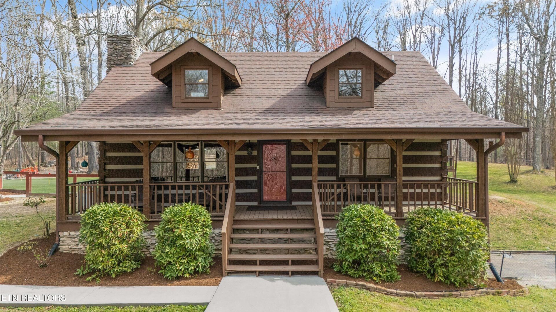 Escape to your own private retreat with this stunning log cabin estate set on 24.15 picturesque acres of wooded countryside with beautiful mountain views. Offering 2,520 square feet, this thoughtfully designed home features 3 bedrooms and 3 full baths, blending rustic charm with modern comfort. Inside, you'll find hardwood floors, a welcoming wood-burning fireplace, and an open-concept kitchen complete with granite countertops and a large island perfect for gathering and entertaining.The finished basement provides additional living or recreation space, while the detached two-car garage offers convenience and storage. Enjoy peaceful mornings and relaxing evenings from the expansive covered front porch, surrounded by nature and abundant wildlife.Outdoor enthusiasts will appreciate the property's exceptional amenities, including over one mile of private trails ideal for mountain biking or four-wheeling, a remarkable 3,000-square-foot golf practice turf, and a hot tub perfectly positioned to take in the serene surroundings. With unmatched privacy, scenic beauty, and endless opportunities for recreation, this one-of-a-kind property delivers the ultimate East Tennessee mountain lifestyle. Located only 30 minutes from Downtown and West Knoxville. Square footage is approximate. Buyer to verify.