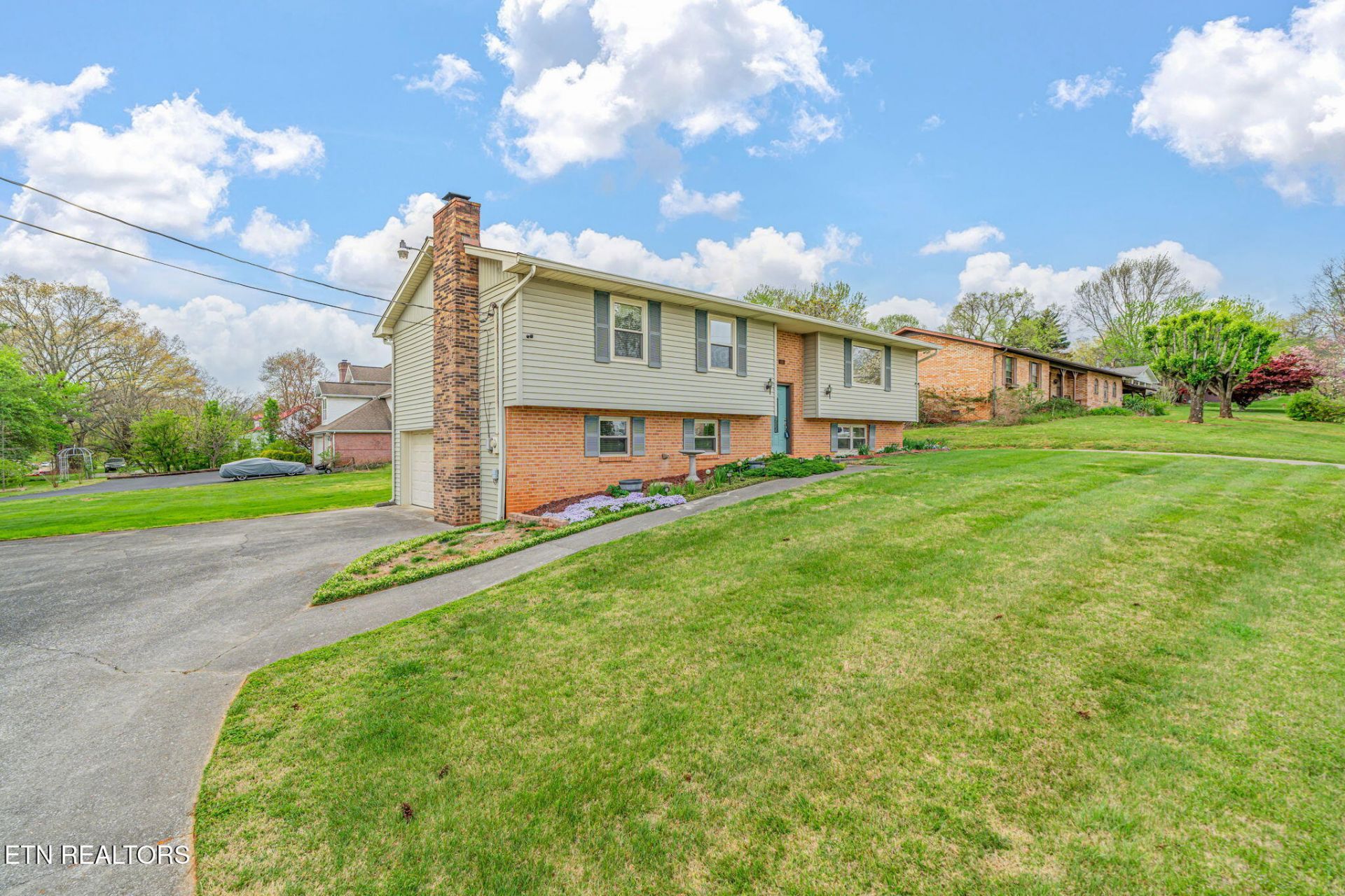 In the heart of Karns. Lovely split foyer on a big corner lot. Small neighborhood, one way in and out. Three bedrooms up, all have carpet. Two large bedrooms down with carpet., and a huge full bath.. One car garage used for storage,. Also, you will find a large garage with separate concrete driveway for workshop or garage. Shed type roof on the garage with another place for two cars to park. Behind the garage is a shed for wood for the wood burning stove in downstairs. den You won't find 5 bedrooms and 3 full baths for this price in Karns. Kitchen remodeled in 2018. granite counter tops. Stainless appliances. Looks brand new. Gas stove top. big country sink. One wall in kitchen has floor to ceiling cabinets with pull out drawers. Open floor plan with kitchen and great room and eat-in dining area. a huge deck for entertaining opens from the kitchen. Steps down to backyard. deck has two gates in you want your pets on the deck All lighting downstairs is LED. Two water heaters one is electric one is gas. Detached garage is 27 x 21. Lots of shelving. Fence belongs to the neighbor. Thanks for showing.