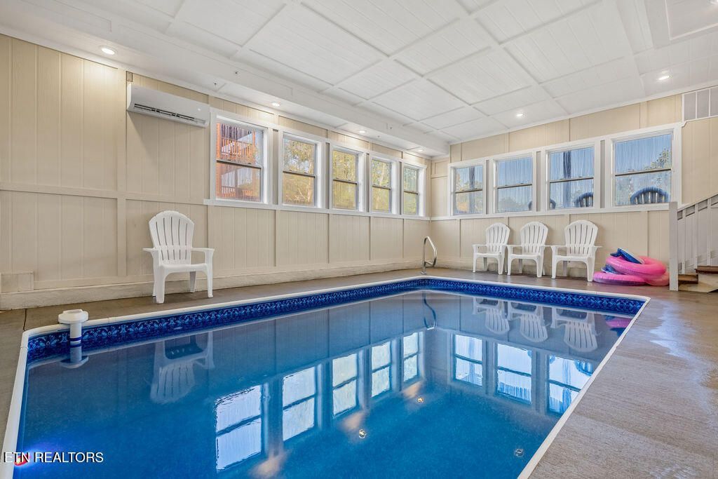 TURNKEY 6 Bd Cabin w/ INDOOR SWIMMING POOL & MOVIE ROOM! This fully furnished cabin comes complete with upscale vacation d?cor and high-end amenities, thoughtfully designed to deliver both comfort and unforgettable guest experiences. The spacious, open-concept main floor boasts soaring ceilings, floor-to-ceiling windows, a fully equipped kitchen with a large island, and a bright, inviting living area - perfect for entertaining and hosting large groups. Each of the six en-suite bedrooms (two on the main floor, four upstairs) includes a private bath, smart flat-screen TV, and closet space, ensuring privacy and convenience for every guest. This cabin was built for fun and relaxation - from the PRIVATE MOVIE ROOM with four leather recliners and a 75'' smart TV, to the GAME ROOM featuring a full-size pool table. Your very own HEATED INDOOR SWIMMING POOL, perfect for year-round enjoyment. Multiple deck areas are designed with OUTDOOR SEATING, perfect for relaxing and soaking in the mountain atmosphere also offering a HOT TUB. Ideally located just minutes from Pigeon Forge, Gatlinburg, and the Great Smoky Mountains National Park.